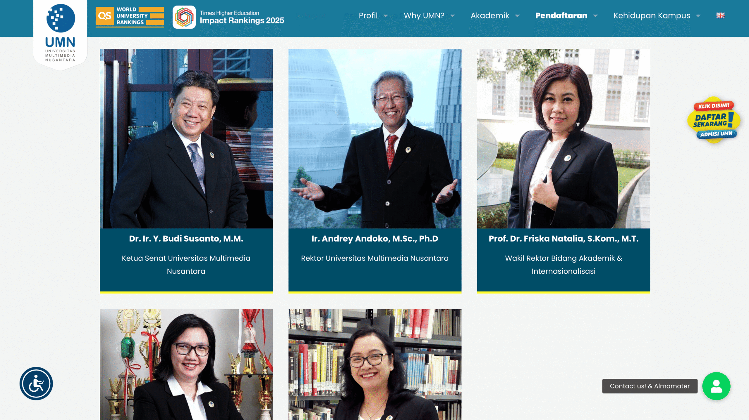 Hilangnya posisi Wakil Rektor Bidang Keuangan dan munculnya Ketua Senat dalam jajaran rektorat baru di situs resmi UMN. (umn.ac.id)