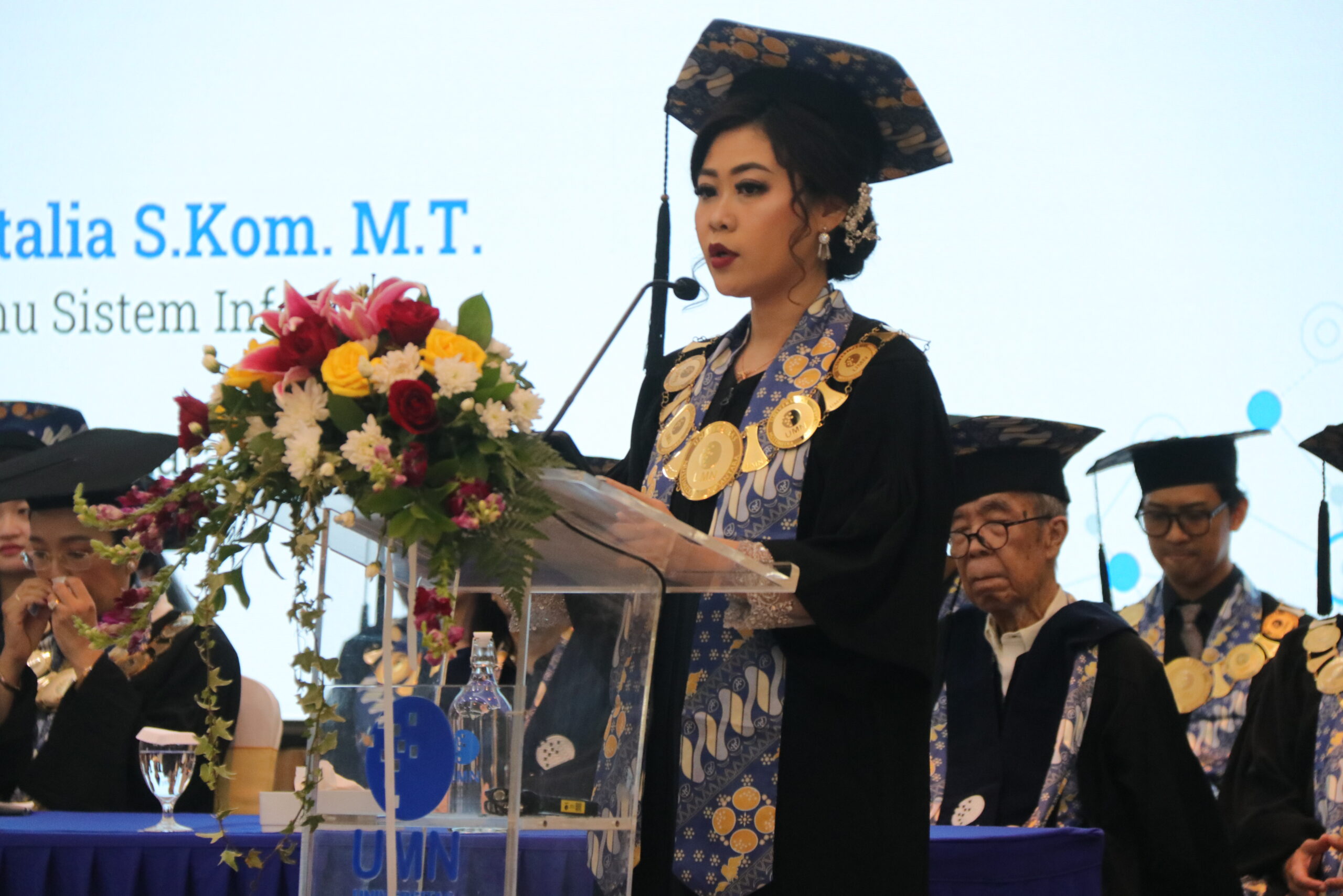 Penyampaian orasi ilmiah oleh Prof. Dr. Friska Natalia, S.Kom., M.T (Dokumentasi UMN)