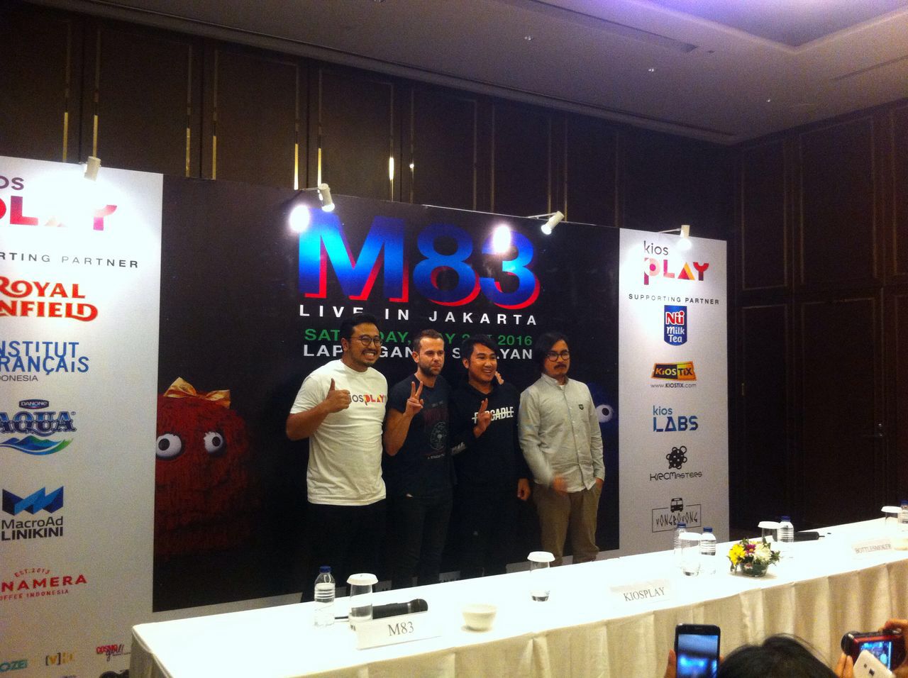 “Untuk bawa mereka ke sini sih, susah-susah gampang. Memang banyak banget fans yang minta ke para promotor, karena M83 beberapa kali mampir ke negara-negara tetangga. Kebetulan mereka sedang world tour dengan album baru mereka ini dan melihat Indonesia sebagai salah satu market yang berpotensial,” tutur managing director kiosPLAY Ade Sulistio, pada konferensi pers di Fairmont Hotel, Jumat (20/5) di Jakarta.