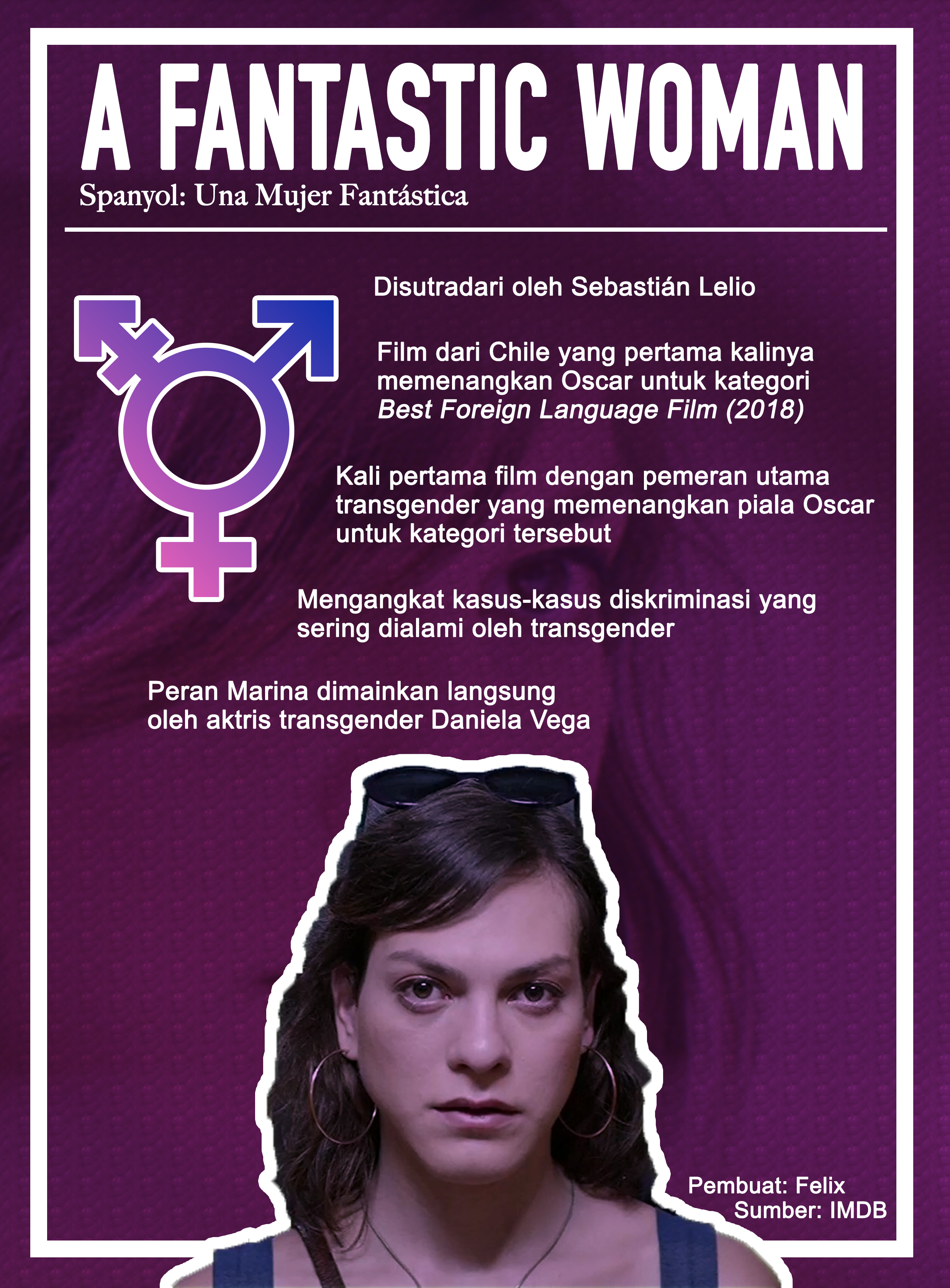 TANGERANG, ULTIMAGZ.com — Usai film Tangerine (Sean Baker, 2015) yang mengusung pemain dan cerita bertemakan transgender, perfilman Chili ikut menghadirkan kisah dengan tema serupa yang berjudul A Fantastic Woman.